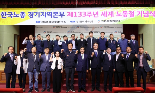 세계 노동절을 맞아 한국노총 경기지역본부가 개최한 이번 행사에는 김동명 한국노총 위원장, 김연풍 한국노총 경기지역본부 의장, 민길수 고용노동부 중부지방고용노동청장, 김춘호 경기경영자총협회 회장 등 노사정 대표자와 도내 노동 가족 500여 명이 함께했다.김 지사는 한국노총의 초청으로 지난해 12월 ‘노동가족 송년의 밤’ 행사에 이어 이번 노동절 기념행사에도 참석해 노동자들을 격려하고 표창장을 수여했다.한편, 도는 ‘일하는 사람을 존중하는 경기도’를 위해 ▲노사민정협의회 운영 ▲노동복지 증진 사업 지원 ▲노동안전지킴이 운영 ▲찾아가는 산업재해 예방 교육 등 노사정 소통과 안전한 노동환경 조성 사업을 지원하고 있다.