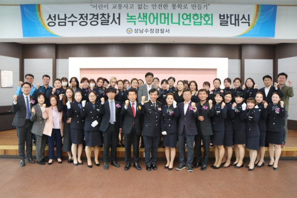 [광성일보] 경기남부경찰청 성남수정경찰서(서장 정성엽)는 성남수정경찰서는 지난 28일 성남수정경찰서 5층 대강당에서 ‘2023 성남수정경찰서 녹색어머니 연합회 발대식’을 개최하였다.이번 발대식에는 신상진 성남시장, 경기도의회의원(문승호, 최만식), 수정구청 경제교통과장, 초등학교장 및 녹색어머니 임원, 모범운전자 회장, 교통질서 연합회장 등 약 100명이 참석한 가운데 봉사활동 유공 회원 감사장 수여, 신임 임원진 위촉과 녹색어머니 활동 영상을 시청하였으며, 올 한 해도 어린이 교통사고가 없는 안전한 성남수정을 위하여 최선을 다해 교통안전 활동을 전개할 것을 다짐하는 시간을 가졌다.