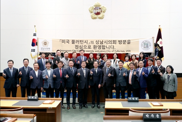 박광순 의장을 비롯한 의장단은 성남시의회를 처음 방문한 풀러턴 시 대표단을 환대하고, 의장실에서 면담을 진행했다. 이후 성남시의회 의원 일동과 풀러턴 시 대표단은 본회의장에서 박광순 의장의 환영사와 프레드 정 풀러턴 시장의 연설을 경청하고 기념 촬영을 하였다.박광순 의장은 “성남시의회 방문을 진심으로 환영한다”며 “이번 자매결연 협약을 계기로 양 도시가 다양한 분야에서 활발히 교류하고 협력하기를 기대한다”고 말했다.