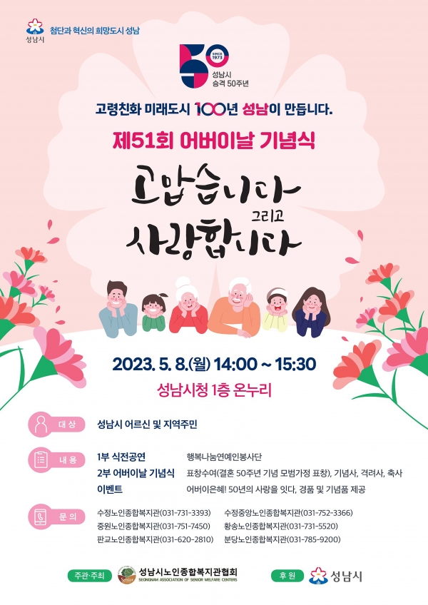 성남시, 시 승격 50주년 기념 ‘어버이날 행사’ 연다