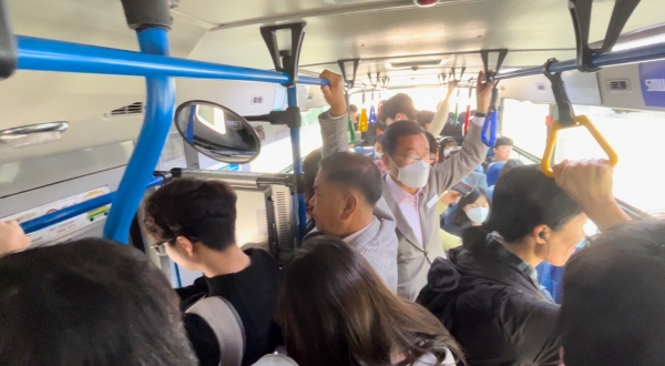 [광성일보] 이현재 하남시장은 하남시 광역교통 보완대책 총 9개 노선 46대 신설 및 증차를 추진하기에 앞서 8일 오전 7시부터 위례신도시 새벽 출근길 버스 탑승 현장점검을 실시했다.이 시장은 위례신도시에서 가장 많이 이용하는 시내버스 31번 노선을 북위례 위례로제비앙 버스정류장에서 탑승하여 남위례 플로리체위례 버스정류장을 거쳐 서울 장지역까지 이용했고, 혼잡도 및 배차간격 등을 직접 점검하고 시민들로부터 불편사항을 청취했다.