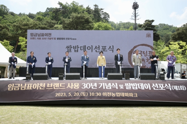 또한, “식생활 변화로 쌀 소비가 줄어 쌀값폭락으로 농업인이 힘들어하고 있다. 농업인에게 희망을 주고, 쌀 산업의 경쟁력을 올리기 위해 오늘 전국 최초로 ‘쌀밥데이’ 선포식을 갖고 1회 행사를 진행한다. 쌀소비촉진운동으로 추진한 ‘쌀밥데이’가 성황리에 치러져 내년에는 전국 지자체가 함께할 수 있기를 소망한다”고 쌀밥데이 추진 의미를 설명했다.1부 행사 브랜드 30주년 기념식에서는 ‘임금님표이천’ 브랜드가 성장해 오는 동안 브랜드 위상 강화를 위해 공헌한 농협 전직 조합장들에 대한 공로패 수여식이 진행 되었고, 미스터트롯 출신 가수 추혁진이 무대에 올라 축하공연을 펼쳤다.2부 행사는 전국 최초로 열린 ‘쌀밥데이’ 선포식과 함께 이천 쌀밥송이 공개 됐다. 이천 쌀밥송은 힙합댄스 군무와 함께 선보이며 참석자들의 큰 박수갈채를 받았다.