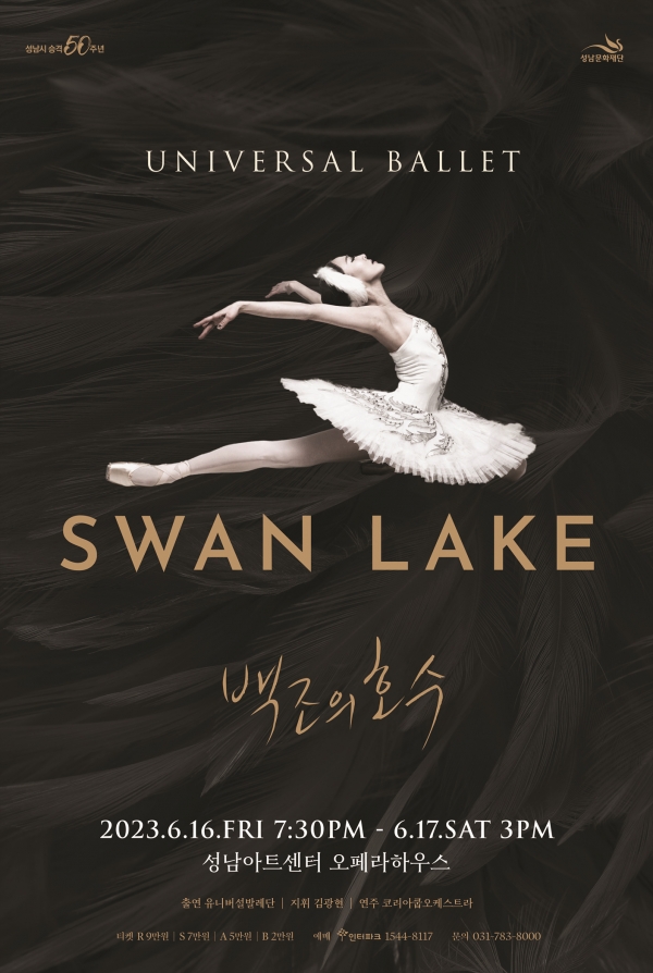 이번 공연에서 백조 오데트와 흑조 오딜의 1인 2역에는 유니버설발레단을 대표하는 강미선, 홍향기가 출연하고, 상대역인 지그프리드 왕자 역은 콘스탄틴 노보셀로프와 강민우가 맡는다. 또한 오페라, 발레, 클래식 등 다양한 분야에서 독보적인 활약을 펼치고 있는 지휘자 김광현과 코리아쿱오케스트라가 연주에 참여한다.티켓은 성남아트센터 홈페이지(www.snart.or.kr) 혹은 인터파크티켓(ticket.interpark.com)을 통해 온라인 또는 전화로 예매가 가능하다. R석 9만원, S석 7만원, A석 5만원, B석 2만원.예매 및 공연에 대한 자세한 사항은 성남문화재단 고객센터(031-783-8000) 및 홈페이지(www.snart.or.kr)를 통해 확인할 수 있다.