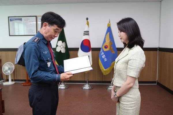[광성일보] 성남수정경찰서(서장 정성엽)는,◦ 5월 22일 전화금융사기(보이스피싱) 피해를 예방한 신한은행 성남지점 직원 A씨에게 감사장과 신고보상금을 전달했다.