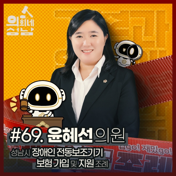 [광성일보] 성남시의회(의장 박광순)는 ‘3분 조례-윤혜선 의원 편’ 영상을 시의회 공식 SNS에 게시했다.이번에 소개된 조례는 윤혜선 의원 등 20명이 발의한 ‘성남시 장애인 전동보조기기 보험 가입 및 지원 조례’이다. 이 조례는 장애인이 이동을 위해 사용하는 전동휠체어와 전동스쿠터의 운행 시 발생하는 사고에 대비하기 위한 전동보조기기 보험 가입과 보험료 지원을 담은 조례이다. 이번 조례를 통해 장애인과 비장애인 모두가 함께 안전한 보행로를 이용할 수 있는 환경이 조성되고, 더불어 장애인의 적극적인 사회적 활동과 참여가 높아지는 효과를 기대할 수 있다. 이 조례는 2023년 2월 20일부터 시행 중이다.