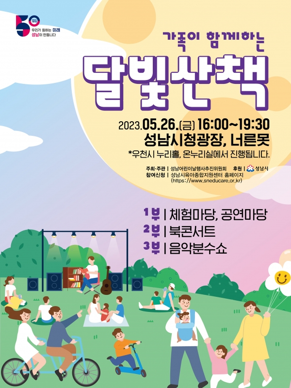 성남시는 오는 5월 26일 오후 4시~7시 30분 시청 곳곳에서 ‘가족이 함께하는 달빛 산책’ 행사를 개최한다.