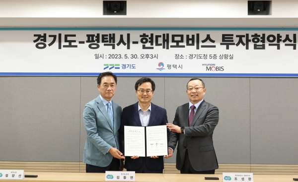 [광성일보] 김동연 경기도지사는 30일 경기도청에서 조성환 현대모비스 대표이사, 정장선 평택시장과 이 같은 내용의 투자협약을 체결했다.김동연 지사는 “작년에 취임하고 연말에 조직개편을 해서 미래성장산업국을 만들었고 그때 만들어진 과 중 하나가 첨단모빌리티산업과”라며 “저는 미래성장산업에 있어 반도체 못지않게, 그 이상으로 첨단모빌리티가 큰 역할을 할 거라 믿고 있다. 이번 투자에 대해서 대단히 기쁘게 생각하고 감사하고 또 환영한다”라고 말했다.