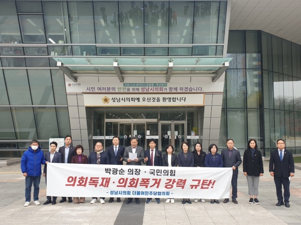 [광성일보] 성남시의회 더불어민주당 협의회는 제282회 성남시의회 1차 정례회를 앞두고 지난 12월 정례회와 4월 임시회 등 계속되는 국민의힘의 의회민주주의 폭거를 비판하며 사과와 함께 재발 방지를 요구하고 나서며 성남시의회에 전운이 감돌고 있다.이날 민주당은“국민의힘은 지난해 12월 정례회에서 쟁점이 되었던‘청년 기본소득’예산을 집행부에서 반영하겠다는 의사가 전달되었음에도 불구하고 독선과 아집으로 끝내 준예산 사태를 초래한 데 이어 준예산 사태를 해결하고자 여야가 상호 합의하고 집행부가 동의한‘2023년도 본예산안’을 잉크도 마르기 전에 일방적으로 파기하고‘2023년도 일반 및 특별회계 세입·세출 예산안에 대한 수정안’을 제출하였고 박광순 의장은 직권 상정한 바 있다.”라고 비판했다.