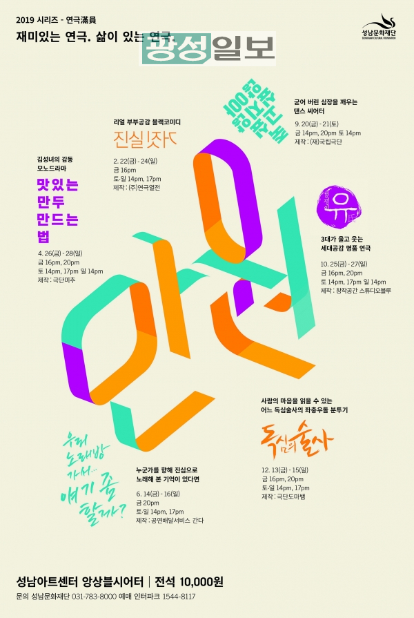 성남문화재단(대표이사 박명숙)은 연극계 화제작을 전석 1만원에 소개하는 2019 <시리즈 – 연극만원滿員>을 성남아트센터 앙상블시어터에서 선보인다.