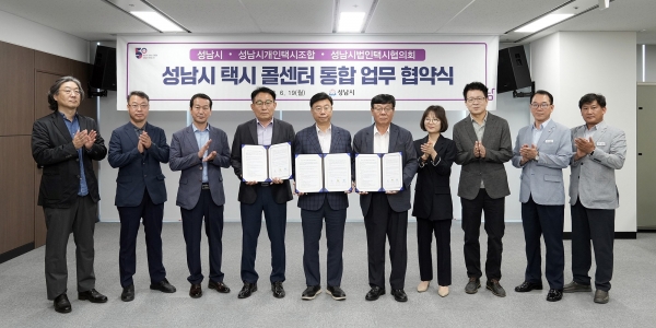[광성일보] 성남시는 6월 19일 시청 상황실에서 ‘푸른콜’ 개인택시조합과 ‘브랜드콜’ 법인택시협의회로 이원화돼 있는 택시 콜센터를 ‘성남콜(가칭)’로 통합하는 업무협약을 체결했다.통합된 성남콜(가칭)은 기존 전화 콜 호출 방식에 플랫폼 앱 택시 호출 방식을 추가해 시민들에게 보다 안전하고 편리한 서비스를 제공하며, 콜 수락 인센티브를 대폭 확대해 이용자 콜비 무료화로 인한 택시 운수종사자의 경제적 부담을 더욱 줄일 예정이다.
