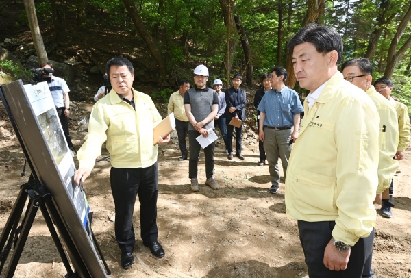 재해복구 6월 말까지 95.4% 완료...일부 폭우피해지역 주민·중앙부처와 협의재해복구 사업은 현재까지 총 571건 중 84%에 이르는 478건이 완료됐고, 6월 말까지 95.4%인 545건, 7월 말까지는 99.5%인 568건이 준공될 예정이다.작년 피해규모가 컸던 남한산성면 검복리 2공구는 사방댐 등 산사태재해복구사업이 실시됐으며 6월 중 복구가 마무리될 예정이다. 재해복구사업이 전반적으로 속도감 있게 진행되고 있으나 모개미천, 우산천 등 일부 지역의 경우는 다소 시간이 걸릴 것으로 보인다.복구토지 중 개인사유지가 포함된 경우에 땅소유주와 협의가 필요한데, 연락이 원활하지 않은 소유주 땅에는 시설물 설치가 어려워 공사가 지연되거나 행정안전부 등 중앙부처의 사전심의나 검토 등 절차가 필요하기 때문이다.
