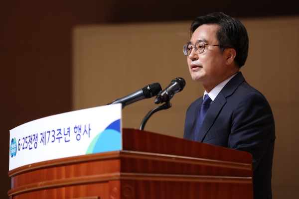 [광성일보] 김동연 경기도지사가 6·25전쟁 73주년을 맞아 “성숙한 민주주의, 평화로운 미래, 더 큰 번영을 열어가는 데 경기도가 앞장서겠다”라고 밝혔다.경기도는 25일 오전 11시 경기도경제과학진흥원 3층 경기홀에서 ‘위대한 헌신 영원히 가슴에, 경기도는 자유 대한민국을 지킨 호국영웅을 영원히 잊지 않겠습니다’를 슬로건으로 ‘6․25전쟁 제73주년 행사’를 개최했다.