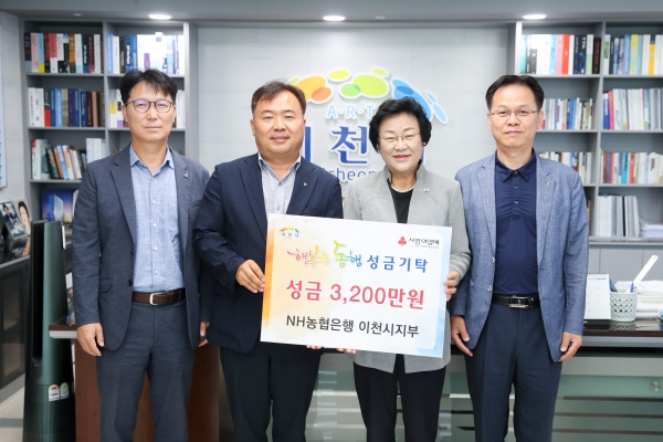 [광성일보] NH농협은행 이천시지부(지부장 김현수)에서 이천시 저소득 소외계층을 위한 성금 3,200만원을 전달하며 모두 함께 더불어 나누고 채우는 농협의 사랑나눔을 몸소 실천했다.NH농협은행 이천시지부는 1961년 개점하여 농업인 실익증진과 지역경제 성장을 위해 힘쓰고 있으며, 다양한 지원과 봉사활동을 통해 소외계층 지원에 앞장서고 있다.