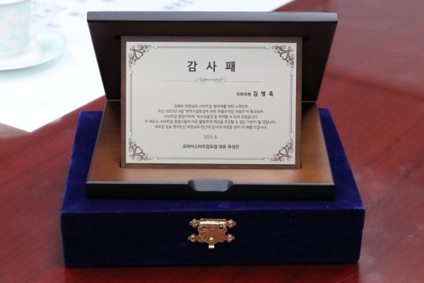 김병욱 의원은 지난 2021 년 5 월 비상장 벤처기업 창업자 주식 한 주에 2 개 이상의 의결권을 부여하는 ‘ 복수의결권 도입 ’ 을 골자로 하는 < 벤처기업법 개정안 > 을 대표발의한 바 있고 , 이어 지난 4 월 27 일 국회 본회의 표결 시 찬성 토론자로 나서 법안이 통과되는데 기여했다 .코리아스타트업포럼 최성진 대표는 감사패 수여 자리에서 “ 김병욱 의원님의 스타트업 생태계를 위한 노력으로 지난 4 월 ‘ 벤처기업법 개정안 ’ 이 통과될 수 있었다 ” 며 “ 이로써 스타트업 창업가에게 ‘ 복수의결권 ’ 을 부여할 수 있게 됐다 ” 고 말했다 .이어 최 대표는 “ 이 제도는 스타트업 창업가들이 더욱 활발하게 혁신을 추진할 수 있는 기반이 될 것 ” 이라며 “ 새로운 길을 열어준 김병욱 의원의 헌신에 감사의 마음을 담아 감사패를 드린다 ” 고 밝혔다 .