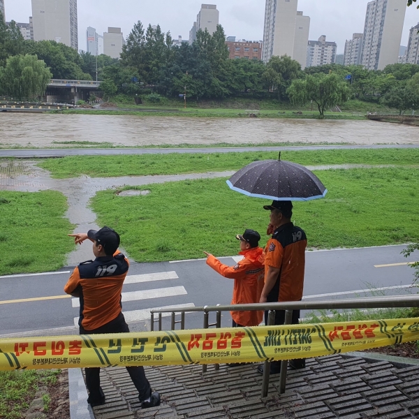 [광성일보] 분당소방서(서장 서병주)는 13일 오후 집중호우에 따른 피해를 예방하기 위해 가용 소방력을 총동원하여 집중호우에 대응하겠다고 밝혔다.분당소방서는 집중호우로 인한 피해를 최소화하기 위해 긴급 대응 태세를 강화했으며 ▲관내 재난취약 지역 예방순찰 실시 ▲관서장 풍수해 위험지역 현장 방문 ▲유관기관 비상연락망 점검 ▲현장활동 수방장비 100% 가동상태 유지 등 총력 대응에 나섰다.