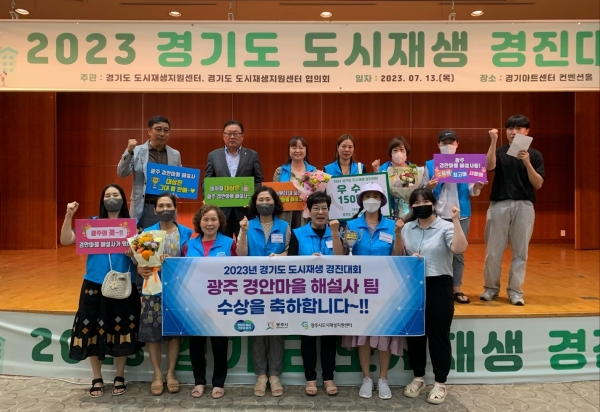[광성일보] 광주시는 13일 경기아트센터에서 열린 2023 경기도 도시재생 경진대회에서 경안마을 해설사팀이 주민참여부문 우수상을 수상했다고 밝혔다.2023 경기도 도시재생 경진대회는 도내 각 지역의 도시재생 및 경제활성화 우수사례를 공유하고 이를 바탕으로 경기도 도시재생 성과 확산 및 활성화를 위해 개최하는 행사로 올해는 예선을 거쳐 본선에 진출한 총 9개팀이 열띤 경쟁을 벌였다.