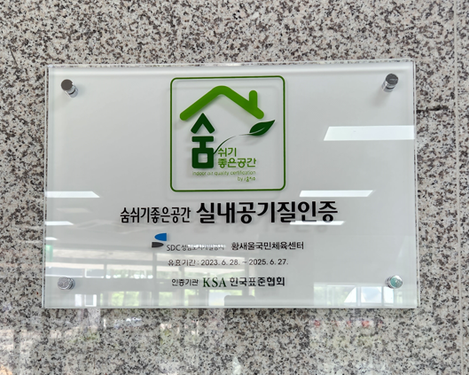 [광성일보] 성남도시개발공사(이하 공사)가 운영하는 황새울국민체육센터는 한국표준협회(KSA)로부터 실내공기질 우수시설 인증을 획득했다고 17일 밝혔다.실내공기질 인증이란 한국표준협회가 개발한 아이숨지수 모델을 활용해 다중이용시설 등 공간의 실내공기질 및 관리 수준을 평가하고 우수성을 인증하는 제도다.