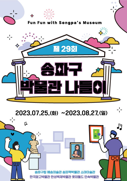 [광성일보] 송파구(구청장 서강석)가 여름방학을 맞아 7월 25일부터 8월 27일까지 관내 박물관 6곳에서 제29회 ‘송파구 박물관 나들이’를 운영한다고 알렸다.‘송파구 박물관 나들이’는 구가 지난 2009년부터 매년 방학 기간마다 관내 박물관과 협업하여 운영해온 전시체험 인증 프로그램이다.이번 여름방학 기간에는 송파구립 예송미술관, 송파책박물관, 한성백제박물관, 소마미술관, 롯데월드 민속박물관, 한국광고박물관 등 6개 기관이 협력하여 지역 어린이들에게 풍성한 전시체험을 선사할 예정이다.