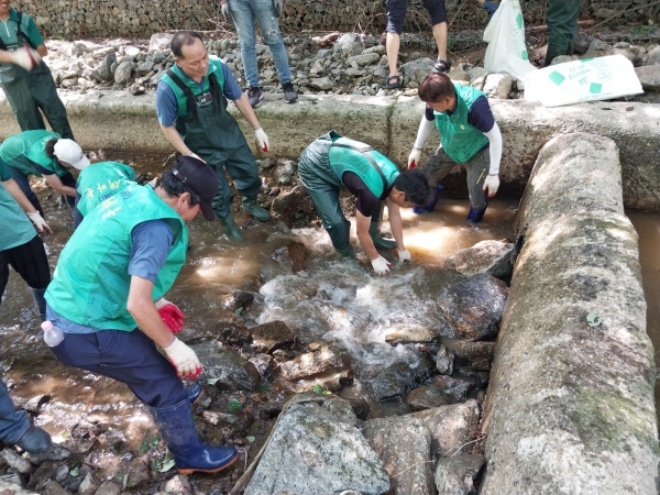 [광성일보] 성남시새마을회(회장 임원묵)는 2023년 8월 3일 지난 폭우로 인하여 무너진 야탑천 수로 보 복구 작업을 실시했다.이날 새마을 남,여 지도자 20명은 10시부터 탄천의 지류인 야탑천의 야탑4교와 5교사이에 폭우로 불어난 물에 파손되어 수로 보에 대한 복구 작업을 실시하였다.