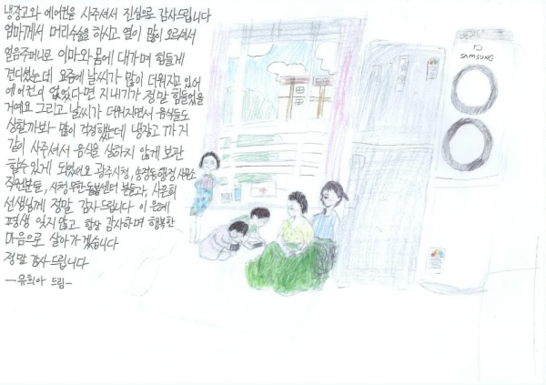 이에 유 양은 “냉장고와 에어컨 덕분에 수술 후 집에서 어머니가 시원하게 지낼 수 있었다”며 “은혜를 평생 잊지 않고 항상 감사하며 행복한 마음으로 살겠다”고 감사의 마음을 전했다.시 관계자는 “마음을 담아 직접 꾹꾹 눌러 쓴 손 편지를 보며 보람을 느낀다”며 “앞으로도 위기가구를 발굴하고 통합적인 서비스 제공 및 후원 연계를 통해 위기가정에 희망을 전할 수 있도록 최선을 다하겠다”고 말했다.