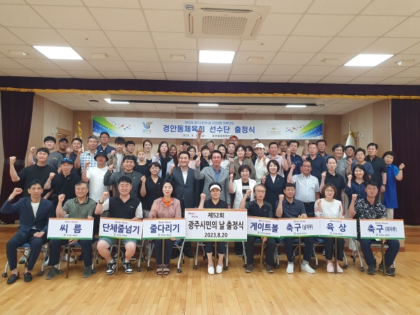 오는 9월 20일 광주시공설운동장에서 열리는 ‘제52회 광주시민의 날 체육대회’에 경안동체육회는 8종목 총 95명의 선수가 출전해 그동안 갈고닦은 기량을 선보일 예정이다.이원복 경안동체육회장은 “남은 한 달여의 기간 동안 최선을 다해 ‘광주의 중심 경안동’의 위상을 널리 알려주기 바란다”고 말했다.이어 윤해정 동장도 “코로나19와 경기침체 등 어려운 시기를 지나 7년 만에 열리는 시민의 날 체육대회인 만큼 주민화합 소통의 시간이 되길 바란다”며 선수단을 응원했다.