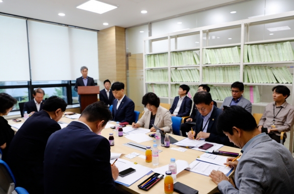 [광성일보] 성남시의회 경제환경위원회(위원장 고병용)에서는 22일(화) 오전 11시 경기신용보증재단 성남지점에서 경기신용보증재단 관계자들과 간담회를 실시했다.이번 간담회는 경기신용보증재단 성남지점 운영현황 파악 및 애로사항 청취를 위해 실시하였으며 성남시의회 경제환경위원회 고병용 위원장, 박종각 부위원장, 최종성 의원(의회운영위원회 위원장), 구재평 의원, 정연화 의원 및 경기신용보증재단 영업이사, 중부지역본부장, 성남지점장이 참석하였다.