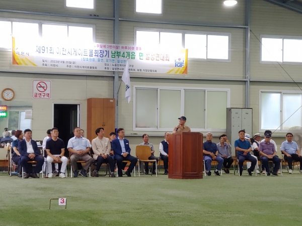 [광성일보] 이천시 게이트볼연합회 설성면 분회(분회장 권중섭)는 8월 25일 설성면 게이트볼구장에서 ‘제91회 이천시게이트볼회장기 남부지역 설성면 대회’를 성황리에 개최했다고 밝혔다.권중섭 게이트볼연합회 설성면 분회장은 “그동안 무더위 속에서도 꾸준한 연습으로 닦아온 회원들의 실력을 맘껏 발휘하는 무대가 되길 바라며, 또한 단순한 승부의 장(場)이 아니라 친목과 화합을 다지는 시간이 되길 기대한다”는 대회 개최 소감을 밝혔다.