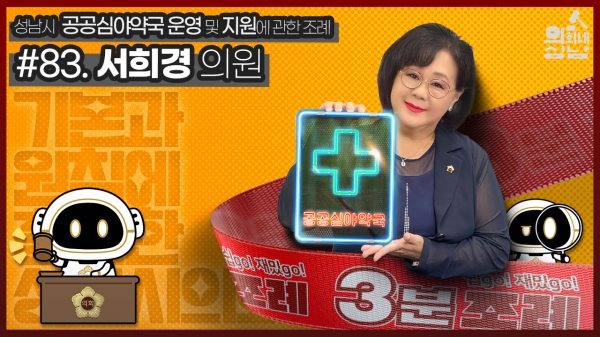 [광성일보] 성남시의회는 ‘3분 조례-서희경 의원 편’ 영상을 시의회 공식 SNS에 게시했다.이번에 소개된 조례는 서희경 의원 등 21명이 발의한 ‘성남시 공공심야약국 운영 및 지원에 관한 조례안’이다.