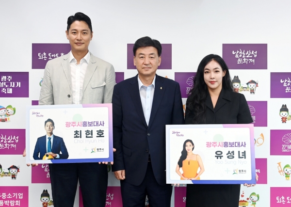 [광성일보] 광주시는 30일 시청 집무실에서 핸드볼 국가대표 출신 최현호씨와 소프라노 유성녀씨를 광주시 홍보대사로 위촉했다.광주시민인 최현호씨는 1998년 제13회 방콕 아시안게임에서 금메달을 차지하는 등 국가대표 핸드볼 선수로서 맹활약을 펼쳤으며 2005년 선수 생활에서 은퇴한 후 스포츠 해설위원, 영화배우로 활동하고 있다.