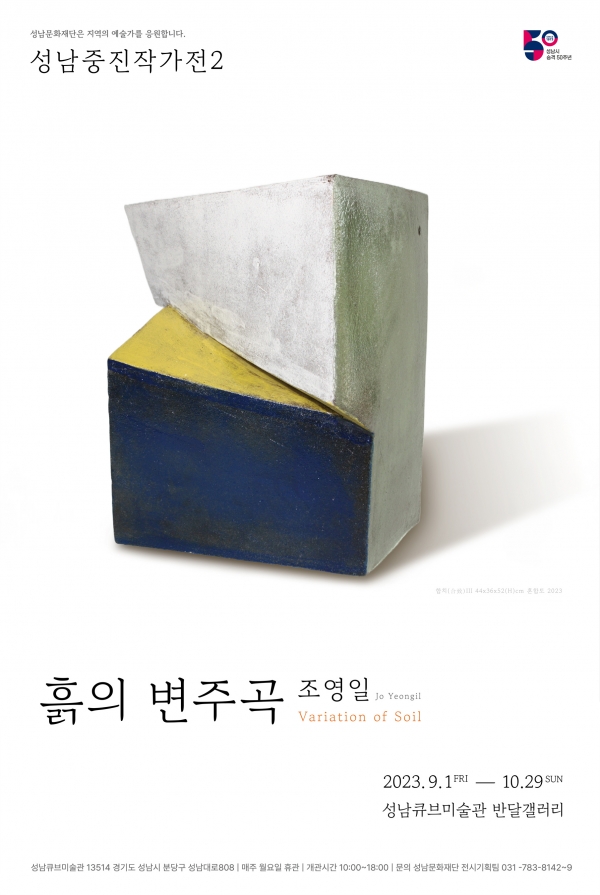 [광성일보] 성남문화재단(대표이사 서정림)이 지역의 중장년 예술가를 조명하고 창작활동을 지원하는 ‘2023 성남중진작가전’의 두 번째 전시로 조영일 작가의 ‘흙의 변주곡’ 전시를 오는 9월 1일(금)부터 10월 29일(일)까지 성남큐브미술관 반달갤러리에서 개최한다.조영일 작가는 40여 년을 성남에 거주하며 작품 활동을 해왔으며, 묵직한 양감의 도예 작업을 통해 ‘조화와 균형’의 주제를 담아낸다. 특히 한국의 전통 도예 기법인 ‘분청(粉靑)’을 기반으로 1950-60년대 미국 추상표현주의 사조 중 하나인 색면 추상과 미니멀리즘 속성을 두루 활용해 간결하면서도 독특한 표현이 특징이다.