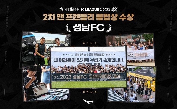 성남은 2차 기간 동안 ▲충성 팬 강화를 위한 ‘멤버십 서비스’ 런칭 및 ‘오픈트레이닝데이’ ▲7월 한 달간의 ‘맥주 축제’, ‘직장인데이’ 등 테마가 있는 홈경기 운영 ▲성남FC 선수단이 직접 성남시 초등학교에 방문하는 '까치함께' 등 다양한 활동을 펼쳤다.이같은 노력으로 2023년 1·2차 팬 프렌들리 상에서 상위구단으로 선정됐고(1차: 2위, 2차: 1위) 또한, 2022시즌 대비 2023시즌 응원 관중이 30.3% 늘어나는 성과를 기록하며 올 시즌 K리그 최고의 팬 프렌들리 구단으로 자리 잡아가고 있다. (홈 12경기 기준 = 23년 누적 관중: 22,452명, 22년 누적 관중 : 17,229명, 원정 관중 제외)