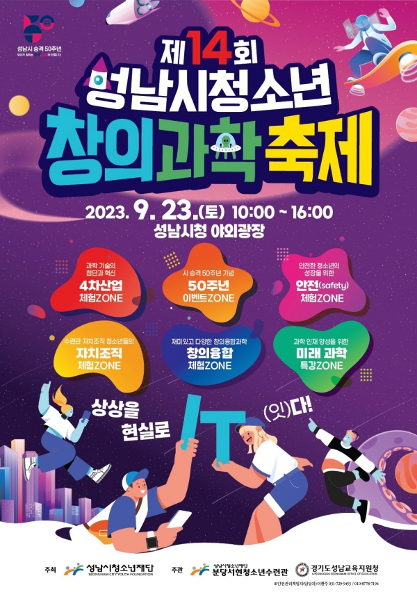 [광성일보] 성남시청소년재단 분당서현청소년수련관(관장 정은옥)은 9월 23일(토) 오전 10시 ~ 오후 4시에 성남시청 야외광장에서“상상을 현실로 IT(잇다)!”를 주제로 제14회 성남시청소년창의과학축제를 개최한다.