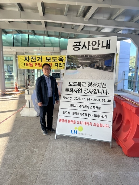 [광성일보] 성남시의회 경제환경위원회 박기범 시의원(더불어민주당-위례,복정,양지,산성동)은 위례주민의 민원사항인 남위례역 육교 내 경관개선 특화사업을 진행중이며 아울러 자전거 무단방치 문제를 해결하고 있다고 밝혔다.