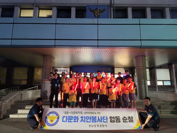 [광성일보] 성남중원경찰서(서장 김완기)는 관내 다문화치안봉사단을 상대로 범죄예방교실을 열어, 최근 잇따라 발생하고 있는 흉악범죄 및 이상동기범죄에 대한 예방 및 112신고 요령과, PM사고 예방 등 교통안전 교육 후, 경찰과 합동으로 관내 여성안심귀갓길 및 공원산책로 집중순찰을 실시하였다고 7일 밝혔다.