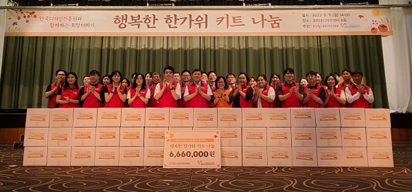 K-디자인의 세계화를 선도하고 있는 한국디자인진흥원(원장 윤상흠)이 추석을 앞두고 성남시 한부모 가정 등 취약계층 100가구에 생필품 키트를 지원했다.