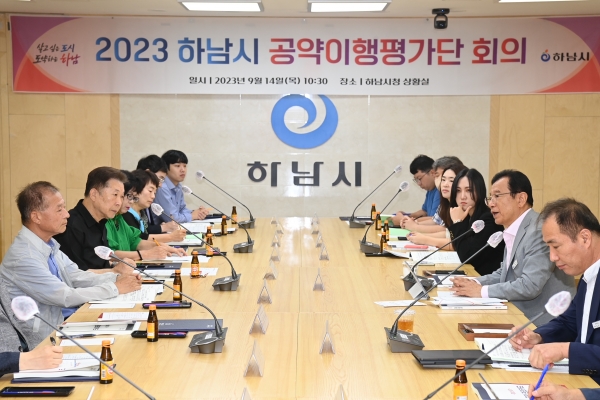 [광성일보] 하남시 공약이행평가단이 출범 1년간 공약이행률 43.5%를 기록하며 시민과의 약속을 순조롭게 지켜나간 민선8기 이현재호(號)에 대해 긍정적인 평가를 내렸다.15일 하남시에 따르면 하남시민들로 구성된 공약이행평가단은 지난 14일 시청 본관 상황실에서 공약명 변경사항 적정여부 등을 심의하고 지난 1년간의 공약사업 진행현황을 공유·논의하는 평가회의를 진행했다.공약이행평가단은 이날 공약명 변경사항 적정여부 심의를 통해 기존 ‘R&D캠퍼스+교육연구 클러스터 조성’이라는 공약명을 자족 기능 강화의 의미를 담아 ‘캠프콜번 첨단산업복합단지 조성’으로 변경했다.