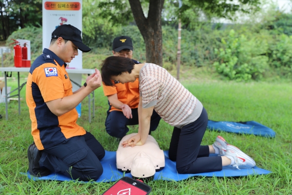 분당소방서(서장 서병주)는 탄천 산책 시민 대상으로 심폐소생술 실습 및 안전교육을 실시