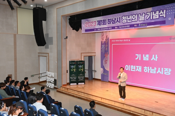 [광성일보] 이현재 하남시장이 15일 청년의 날 기념식에서 “우리시는 ‘최고의 청년 복지는 양질의 일자리 창출’이라는 시정 철학을 바탕으로 5만개의 일자리와 연간 3조원의 경제효과가 기대되는 K-스타월드 조성사업을 신속히 추진하고, 국내 최고 수준의 기업투자유치를 이뤄내겠다”라고 밝혔다.이현재 시장은 이날 하남시청소년수련관에서 열린 ‘제1회 하남시 청년의 날 기념식’에 참석해 “청년명예시장제 운영 등을 통한 청년과의 적극적인 소통을 바탕으로 현재 청년들이 가장 어려움을 겪는 취업 문제에 대한 해법을 마련할 수 있도록 노력하겠다”며 이같이 말했다.