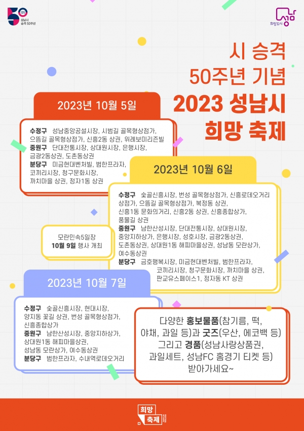 ‘2023 성남시 희망 축제’  전통시장과 골목상권에서 시 승격 50주년 이벤트 풍성