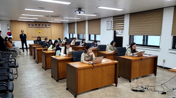 [광성일보] 성남중원경찰서(서장 김완기) 외사계는 2023. 10. 19.(목) 오후 성남중원경찰서 소회의실에서 외국인 및 다문화 이주여성들의 면허취득을 지원하는『외국인 운전면허교실』을 실시하였다. 외국인 운전면허교실은 외국인 유학생 및 다문화 이주여성 등 체류 외국인들의 교통 범죄예방과 한국 정착의 기반이 되는 운전면허 취득을 지원하는 다문화 치안활동으로,성남중원서 외사계는 기존 모란자동차운전면허학원과 체결한 MOU를 바탕으로 외국인 수강생의 편의를 제공하기 위하여 경찰서 출장 학과시험을 추진하여 10. 19.(목) 14시, 도로교통공단 원주 면허시험장의 협조를 얻어 경찰서에서 외국인을 대상으로 출장 학과시험을 시행하였다.