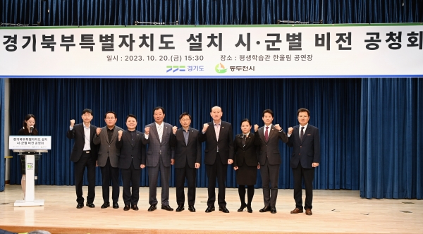 특히 특별법 특례로 군사 규제 정상화를 통해 시 개발의 핵심적 역할을 할 수 있는 미군 공여지 및 주변 개발, 활성화 지원과 인구감소 지역에 대한 수도권 역차별 해소 등의 지원을 위해 경기북부특별자치도 설치가 필요하다고 덧붙였다.박형덕 동두천시장은 이날 환영사를 통해 “동두천은 수도권이라는 이유와 잘못된 규제로 어려움을 겪고 있다. 반드시 이번 기회에 특별자치도가 이뤄져야 한다”며 경기북부특별자치도 설치에 대한 지지 의사를 밝혔다.오후석 경기도 행정2부지사는 “경기북부특별자치도의 주인은 바로 주민 여러분이다. 경기북부주민들이 똘똘 뭉쳐서 한마음 한뜻으로 경기북부특별자치도 설치 추진을 위해 지지를 해줘야 한다”고 당부했다.경기도는 구리(10.25.), 남양주(10.27.), 의정부(10.31.), 양주(11.1.), 고양(11.2.), 포천(11.3.), 파주(11.6.), 가평(11.15.)에서 ‘경기북부특별자치도 설치 시군별 비전 공청회’를 이어 나갈 예정이다. 모든 공청회는 누구나 참여하여 의견을 제시할 수 있고, 경기도청 유튜브(www.youtube.com/@ggholics)를 통해 시청 가능하다.