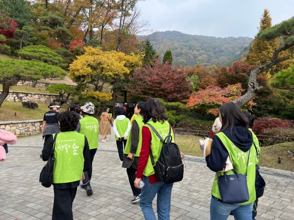 경기도 광주 소재 화담숲에 방문하여 알록달록 예쁘게 물든 단풍 구경을 하며 가을을 만끽할 수 있었으며, 화담숲 내 카페에서 참여자들 간 티타임을 가지며 친목을 도모하는 시간을 가졌다.용○○ 참여자는 “친분이 있는 참여자가 없어 참여를 망설였으나, 나들이를 와보니 고민할 필요가 없었다. 교육에서만 마주치던 참여자들과 이번 계기를 통해 서로 대화도 나눌 수 있었으며 이를 통해 같은 지역의 이웃이 생긴 것 같아 기분이 좋다.”고 소감을 밝혔다.