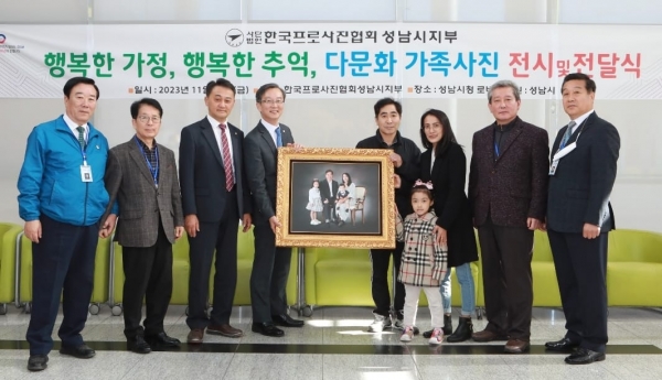 (사)한국프로사진협회 성남시지부(지부장 이한우)는, 11월 10일 성남시청1층 로비에서, 지난 10월 21일 촬영한 22팀의 다문화가족 사진 전달식을 가졌다.