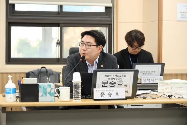 [광성일보] 경기도의회 교육행정위원회 문승호 의원(더불어민주당, 성남1)은 13일 성남교육지원청, 의정부교육지원청을 대상으로 실시된 2023년도 행정사무감사에서 교육장과 지역의 적극적인 협력, 구도심·신도심 교육적 차별 대책, 학교폭력 근절 등을 주문했다.
