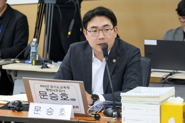 [광성일보] 경기도의회 교육행정위원회 문승호 의원(더불어민주당, 성남1)은 15일 경기도교육복지종합센터, 경기도율곡교육연수원, 경기평생교육학습관, 경기도교육청안전교육관, 교육도서관(중앙, 과천, 성남, 화성, 의정부)을 대상으로 실시된 2023년도 행정사무감사에서 시대에 발맞춘 교육도서관의 변화, 직종별 차별 없는 복지혜택 제공 등을 촉구했다.