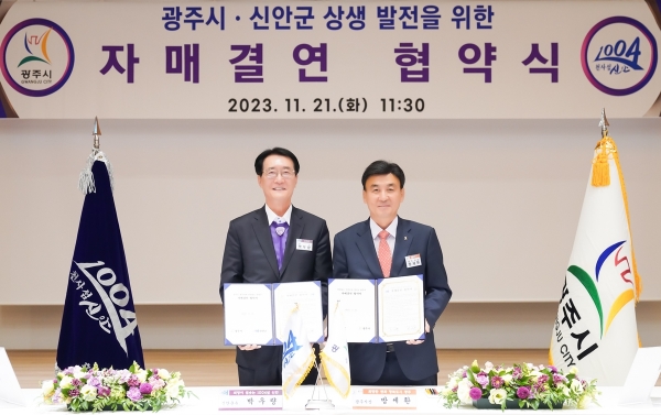 [광성일보] 광주시는 21일 곤지암리조트 컨벤션홀에서 신안군과 지속적인 상호 교류와 협력을 바탕으로 양 도시의 공동 발전을 도모하기 위한 자매결연 협약을 체결했다.