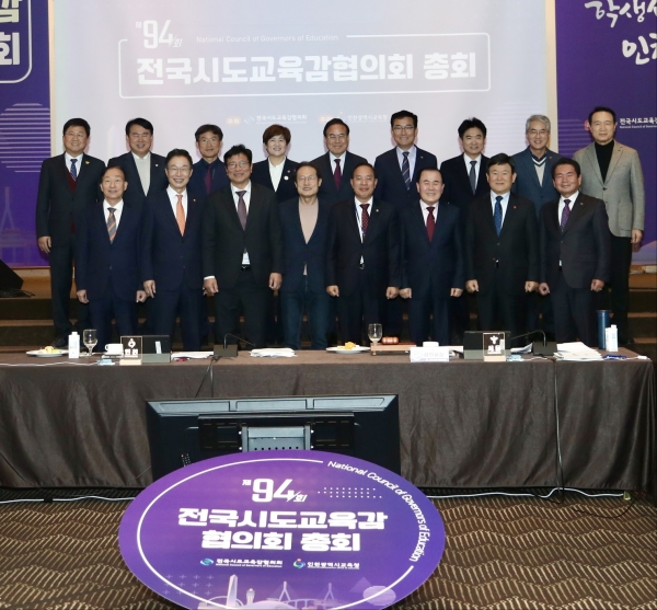 [광성일보] 전국시도교육감협의회(회장 조희연 서울시교육감, 이하 협의회)는 11월 23일(목), 인천광역시 송도 센트럴파크 호텔에서 제94회 총회를 개최하여 「학교전담경찰관 증원 배치」 건의 등 9개의 안건을 의결하였으며, 현재 교육계의 현안으로 떠오르고 있는 「유보통합 과제 해결 방안」 등을 논의했다.▶ 주요 의결 사항□ 학교폭력 예방을 위한 「학교전담경찰관 증원 배치」 건의, 최근 학생들 사이에서 학교폭력의 유형 및 양상이 다양해지고 있으며, 마약과 도박 등과 같은 중범죄도 발생하고 있다. 이러한 문제를 해결하기 위해 2012년부터 학교전담경찰관 제도를 도입・운영 중이며, 도입 초기 경찰관 1인당 담당하는 학교 수를 10교 수준으로 유지해왔다.