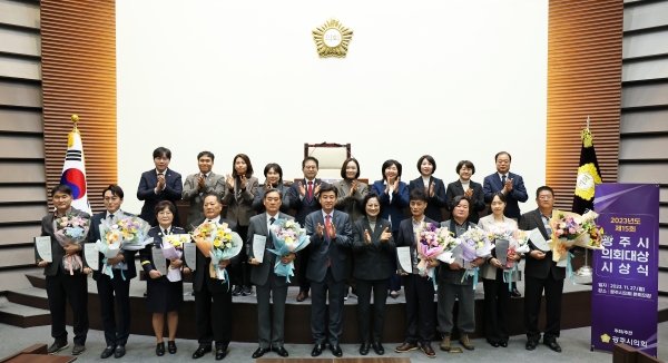 광주시의회(의장 주임록)는 27일 의회 본회의장에서 ‘제15회 광주시의회대상’ 시상식을 진행하였다.