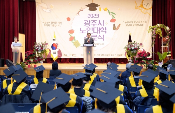 2023년 광주시노인대학 수료식을 개최했다. 이날 수료식에는 방세환 광주시장을 비롯한 지회장, 국회의원, 시의장, 시·도의원, 내 외빈, 졸업생 등 150여명이 참석했다.