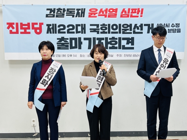 성남,진보당 장지화, 김현경, 유인선 후보는 기자회견을 갖고 제 22대 국회의원선거에 출마 선언
